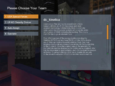 a screen to choose a team or spectate. It will